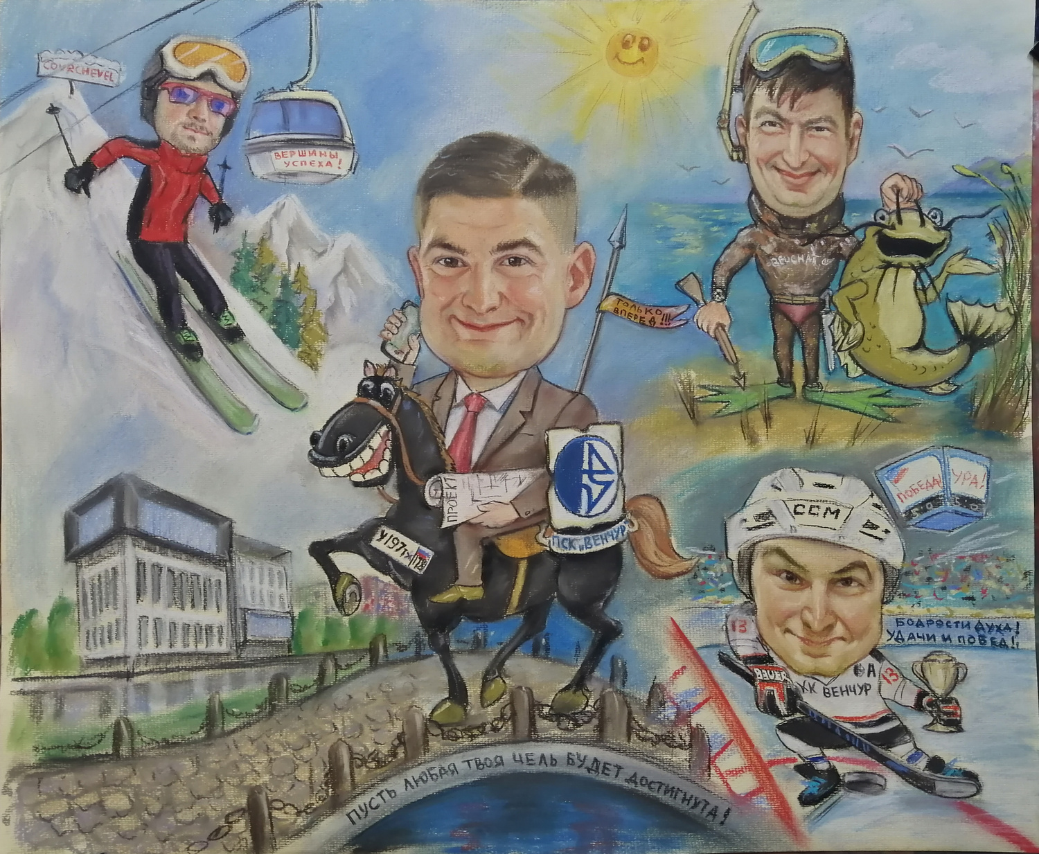 — масло на холсте, пастель, «сухая кисть», графика, смешанная техника, шаржи и анималистика.
