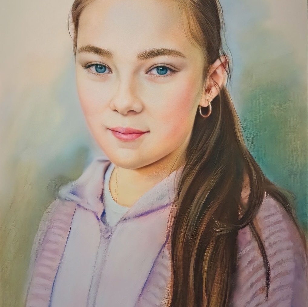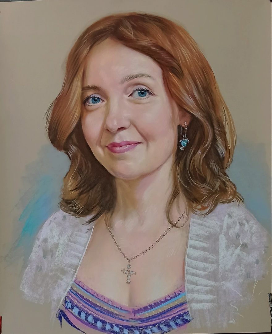 Пастельные портреты популярны именно из-за своих мягких полутонов и плавных переходов. По выразительности и глубине они могут не уступать даже масляной живописи, но при этом смотрятся легче и деликатнее. Эта техника позволяет создать не только реалистичный портрет, но и более художественный образ — с тонкой атмосферой и красивым настроением.