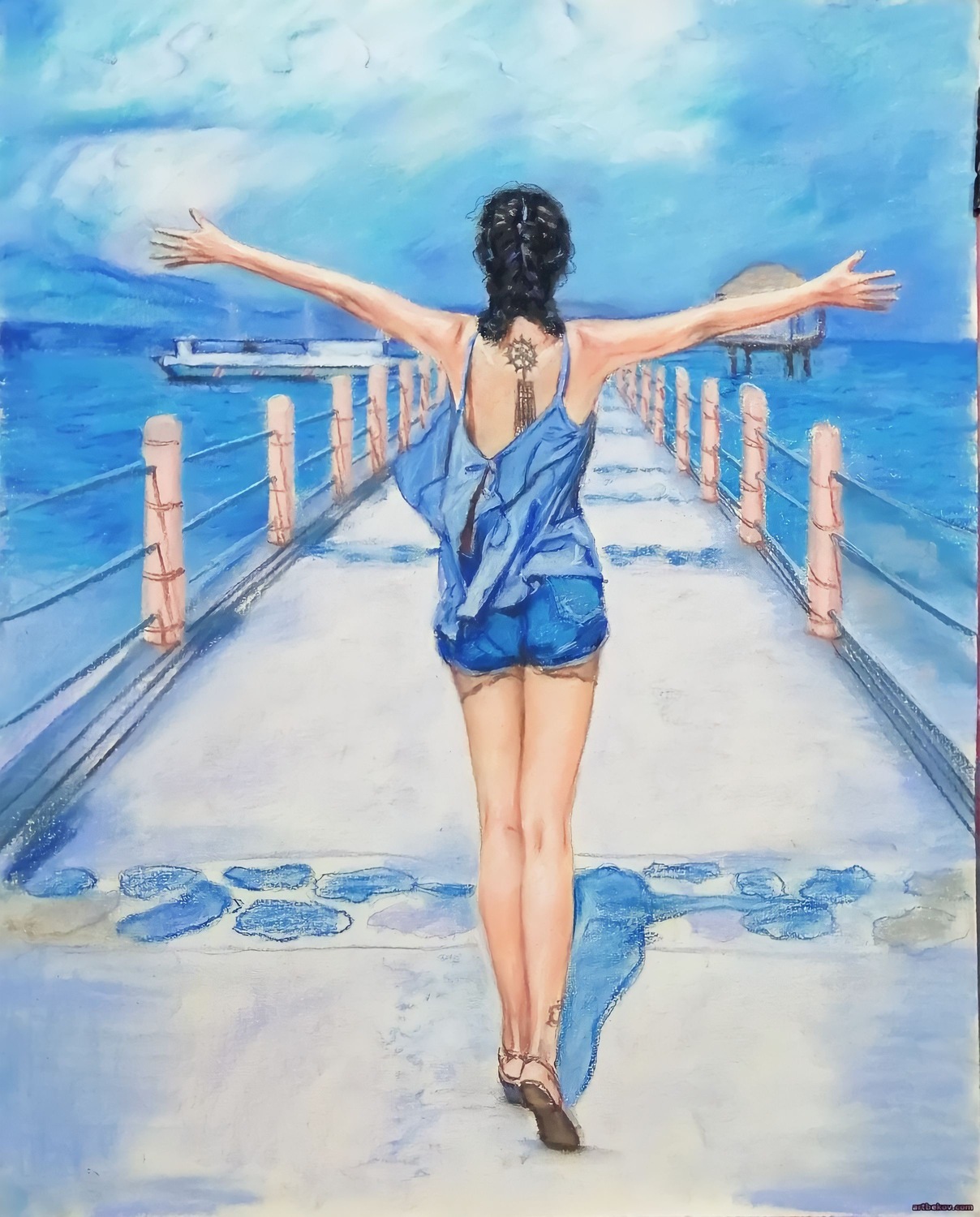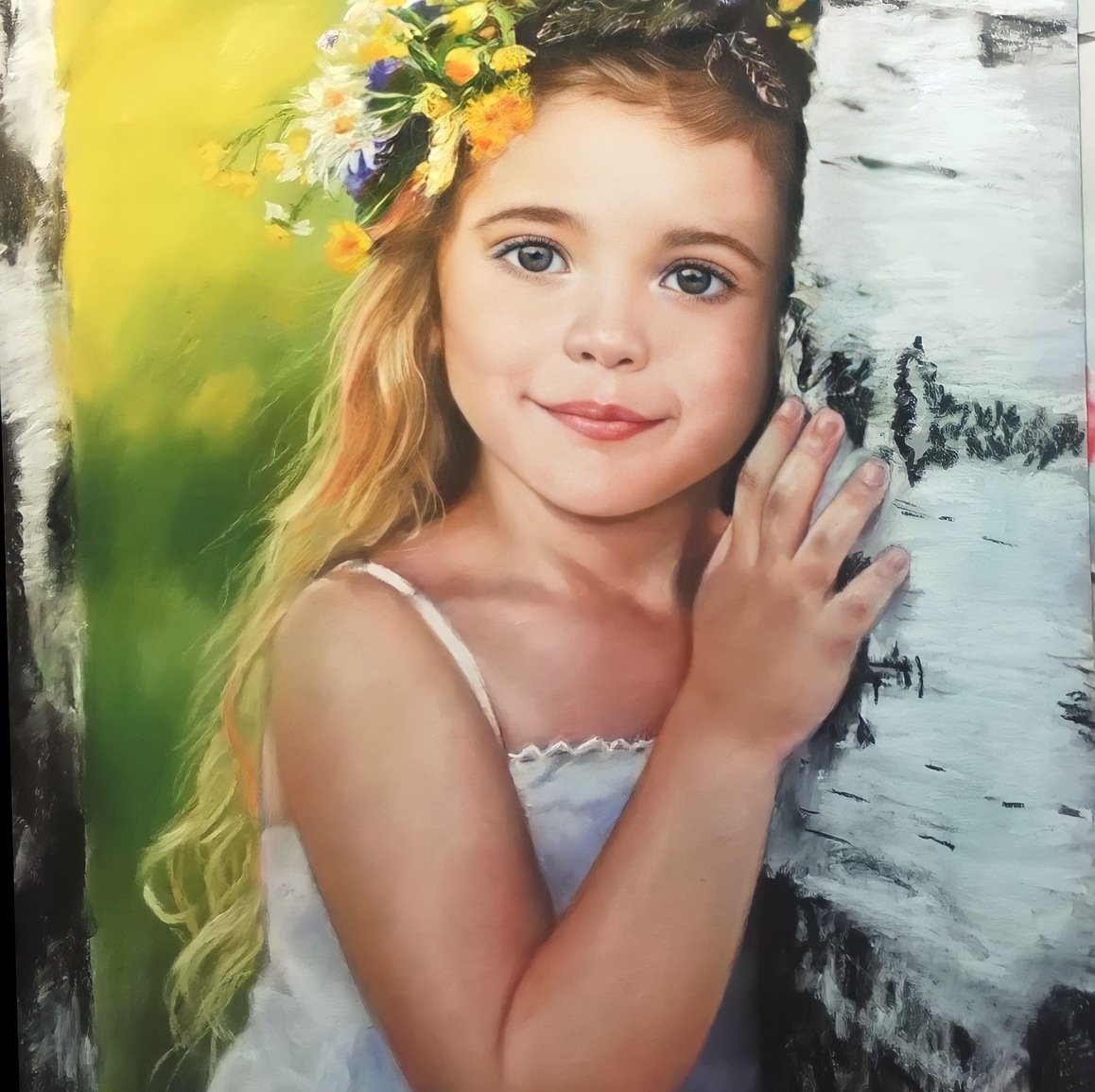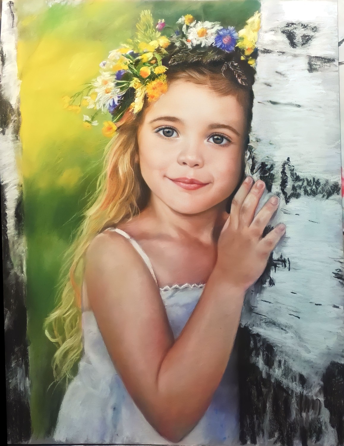 Портреты и картины пастелью выполняются на специальной фактурной бумаге, которая «держит» пигмент и помогает создать богатую поверхность. Именно фактура придаёт работе дополнительную глубину и делает изображение более живым. При необходимости мы подбираем формат и композицию так, чтобы готовая работа гармонично смотрелась в будущем оформлении.