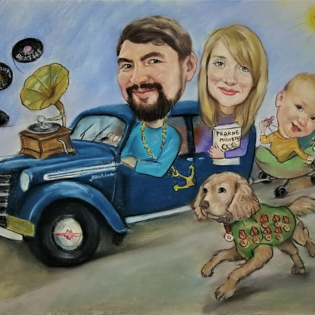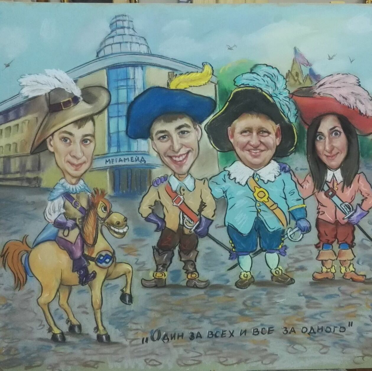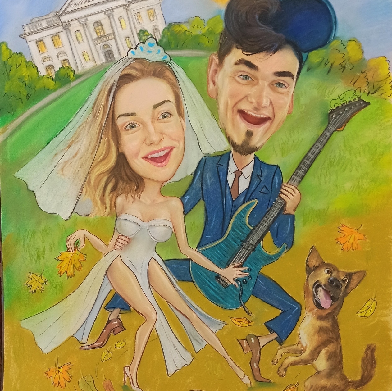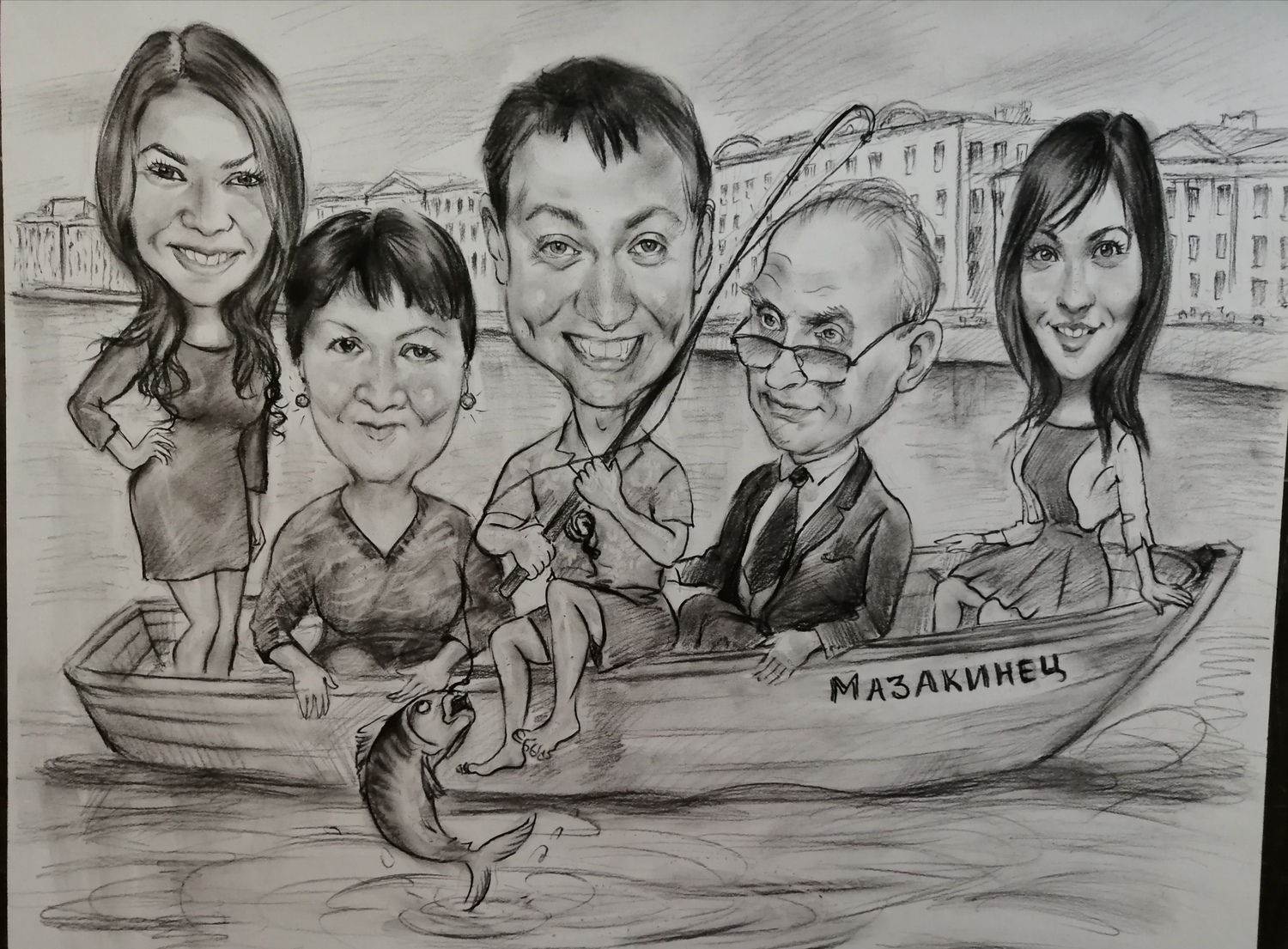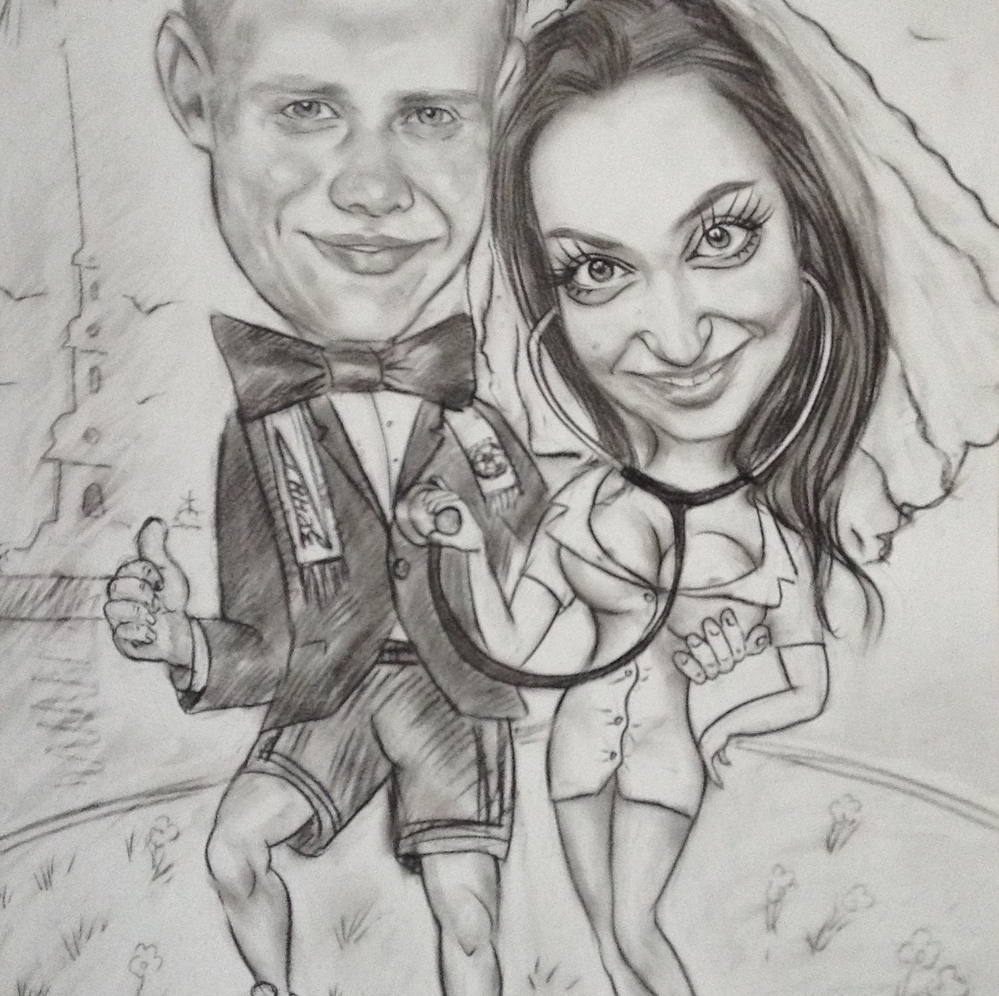 Работа создаётся по фото хорошего качества: чем лучше видны лицо, мимика и детали, тем точнее получится результат. Можно сделать шарж одного человека, пары или целой компании, а также объединить людей с разных фотографий в одну композицию. При желании добавляем сюжет: любимое хобби, профессию, интересные детали, фон или предметы — чтобы шарж выглядел персонально и «про вас».