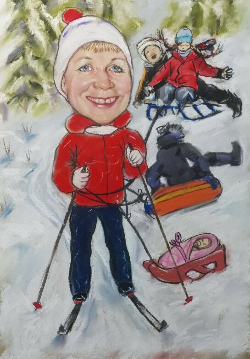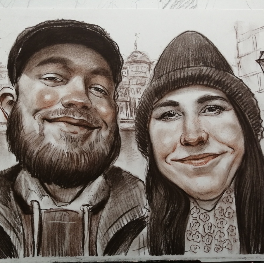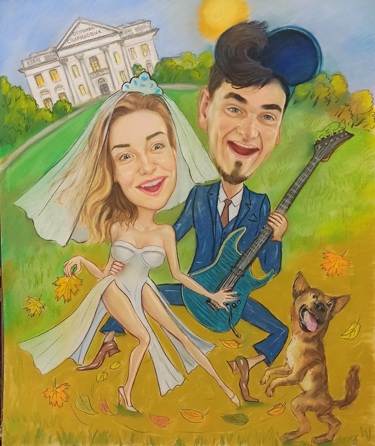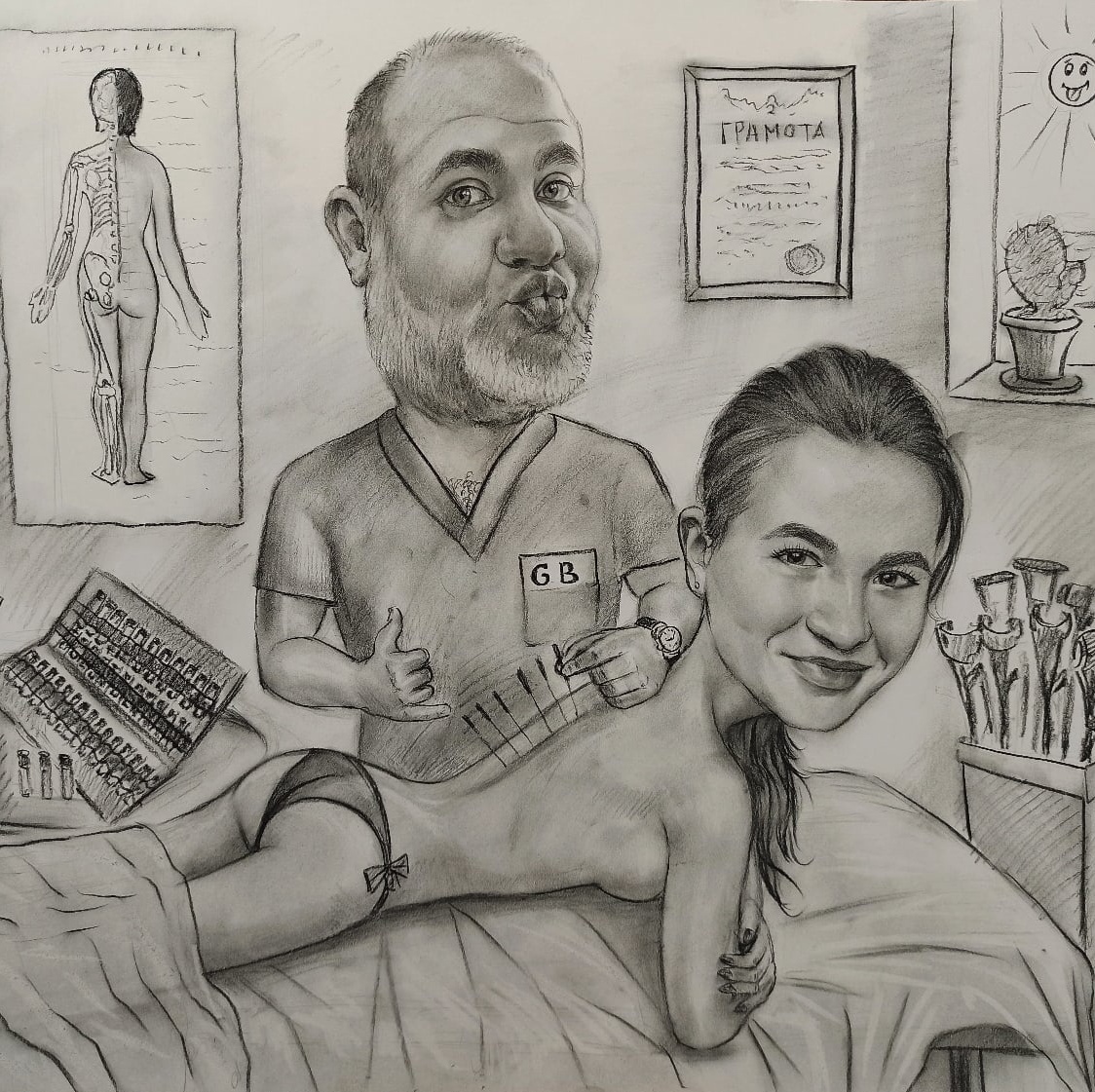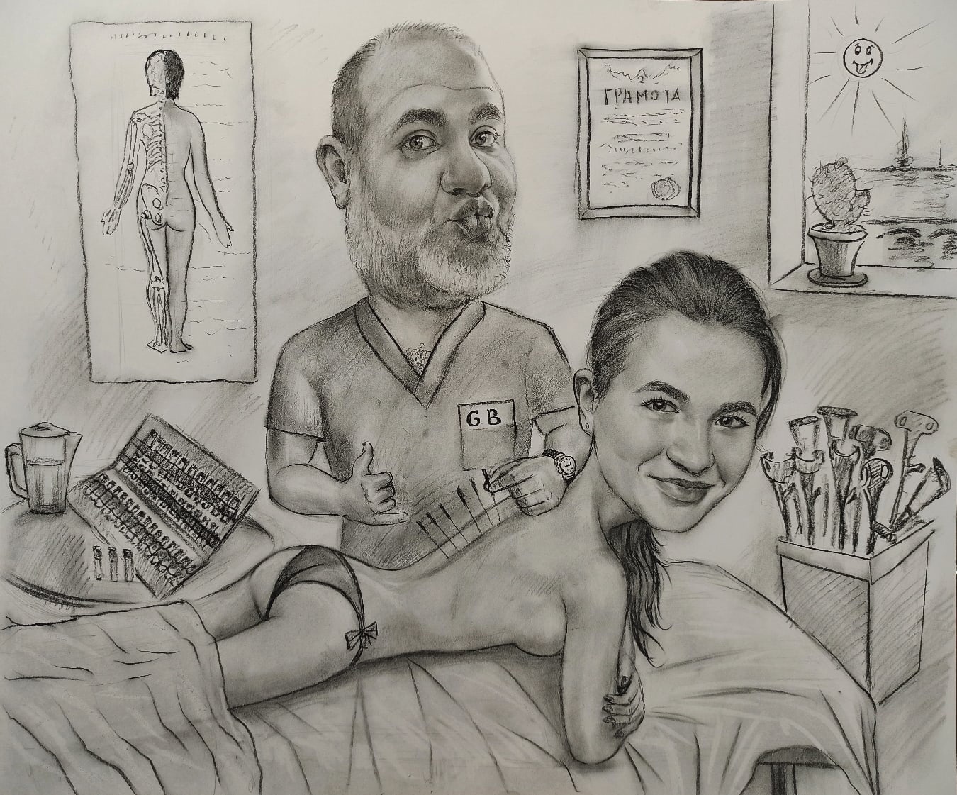 Работа создаётся по фото хорошего качества: чем лучше видны лицо, мимика и детали, тем точнее получится результат. Можно сделать шарж одного человека, пары или целой компании, а также объединить людей с разных фотографий в одну композицию. При желании добавляем сюжет: любимое хобби, профессию, интересные детали, фон или предметы — чтобы шарж выглядел персонально и «про вас».