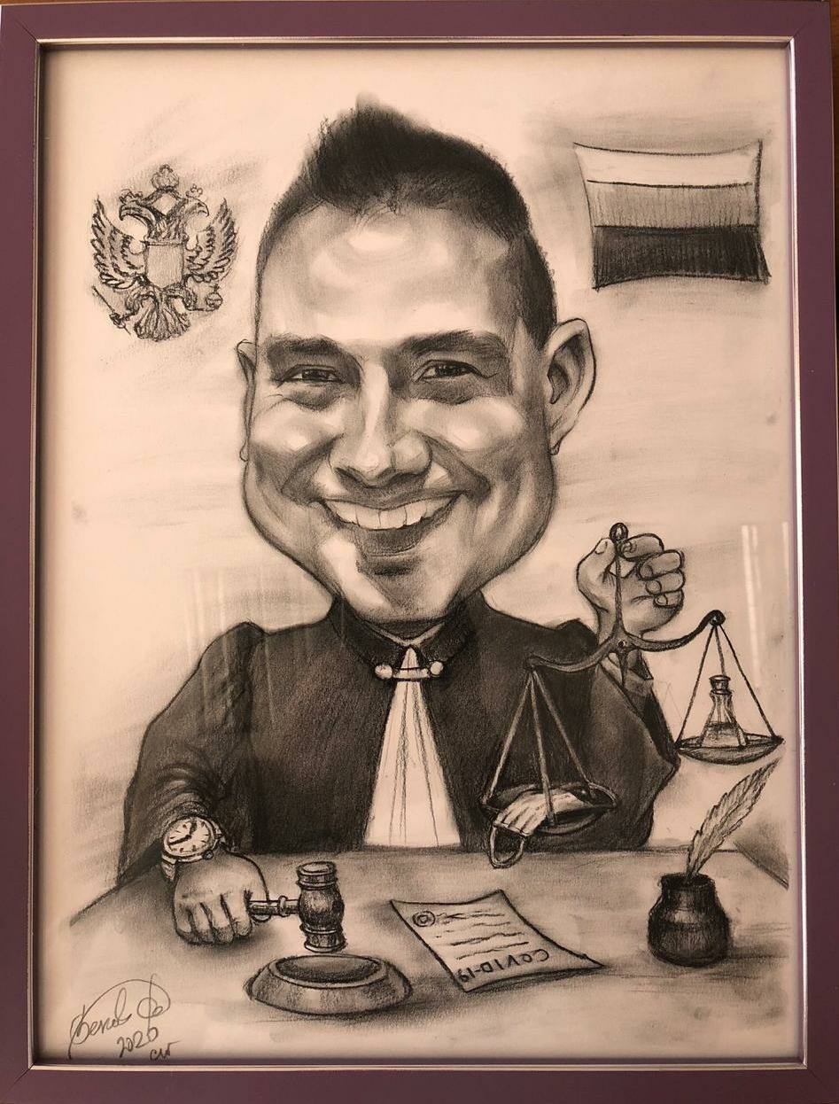 Готовый шарж удобно оформить в раму — он отлично смотрится как в интерьере, так и в качестве подарка на день рождения, юбилей, свадьбу или корпоратив. Перед началом мы согласуем идею, размер, сроки и стоимость, чтобы вы точно понимали, что получите на выходе.