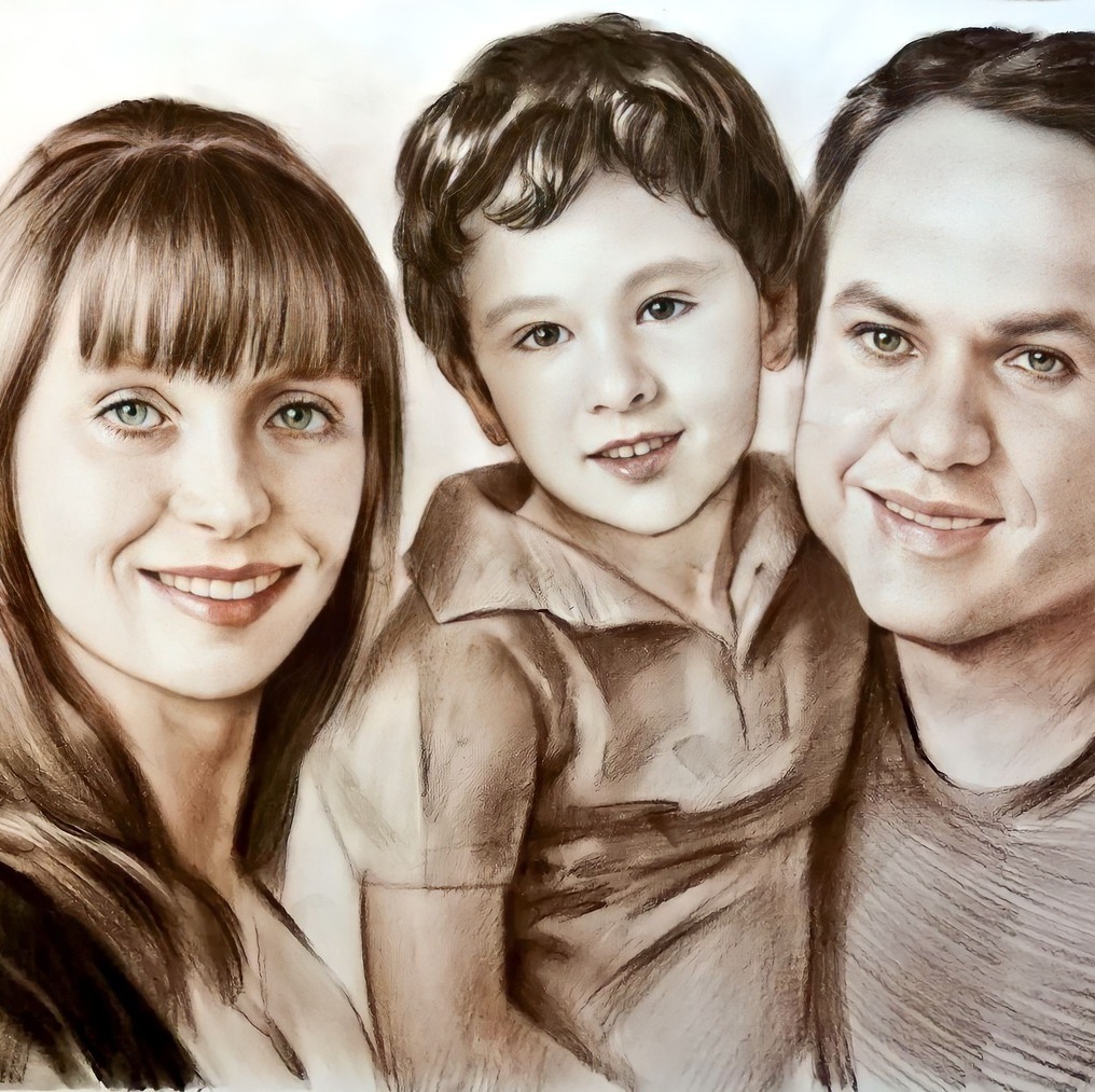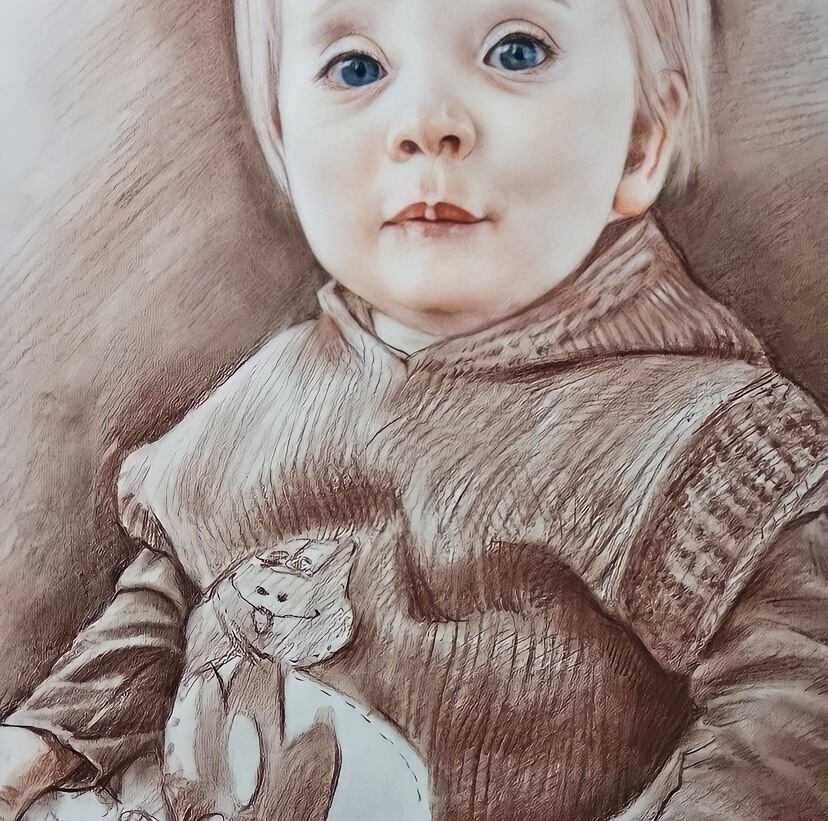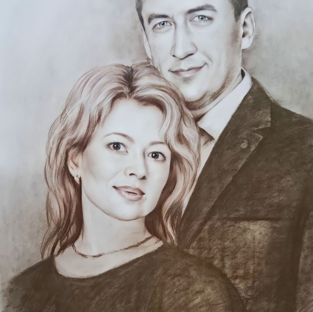 Главное преимущество — гибкость: мы можем выделить лицо, взгляд, руки, одежду или фон именно так, как вы хотите. При этом работа остаётся цельной, а материалы дополняют друг друга, усиливая впечатление и создавая эффект «живого» изображения.