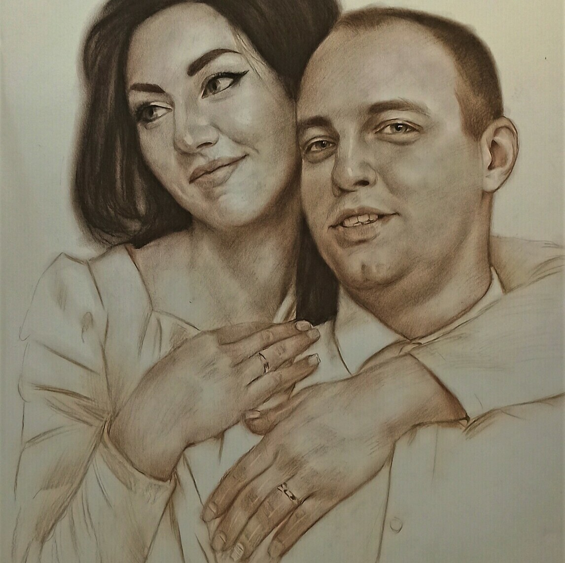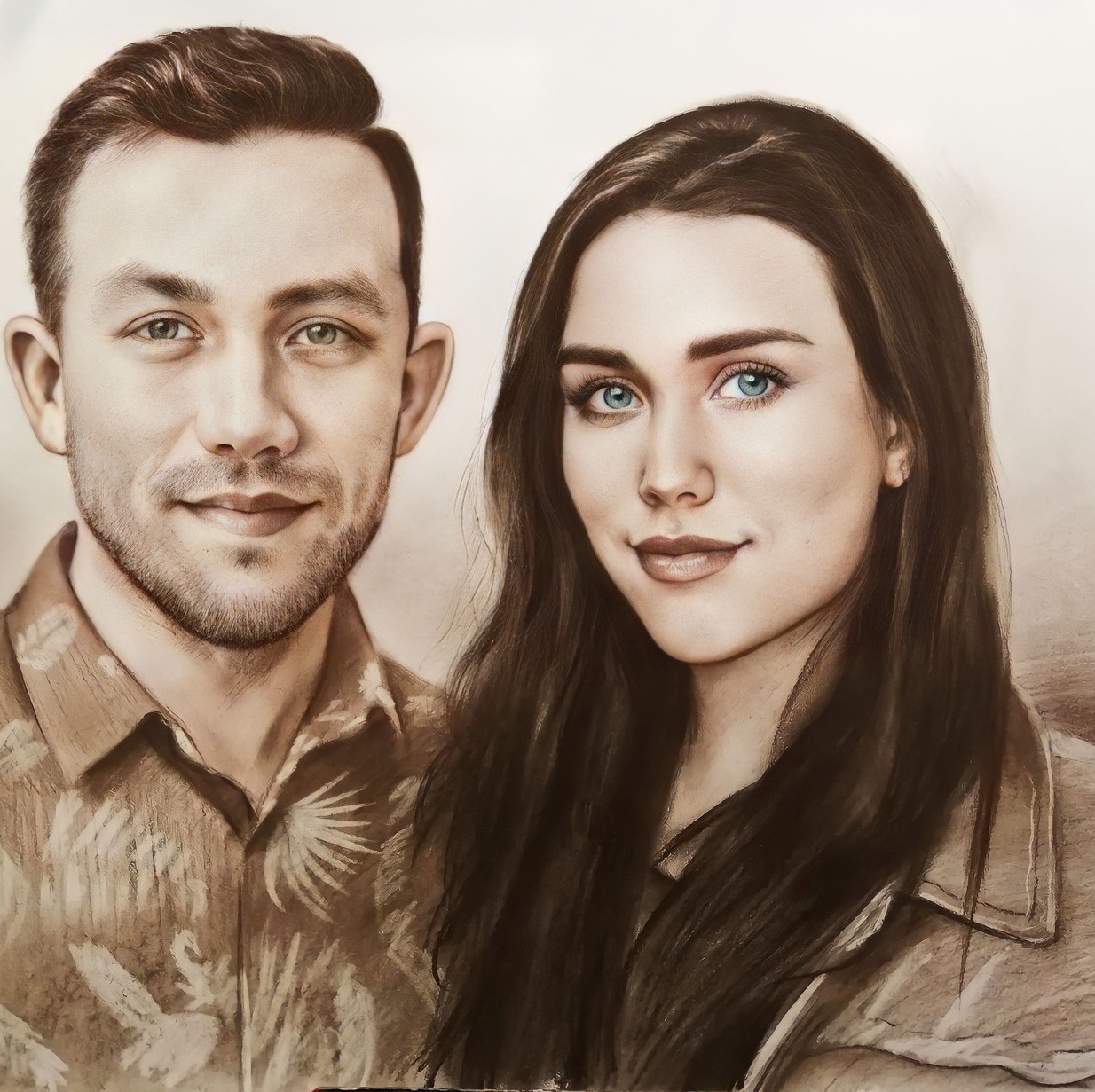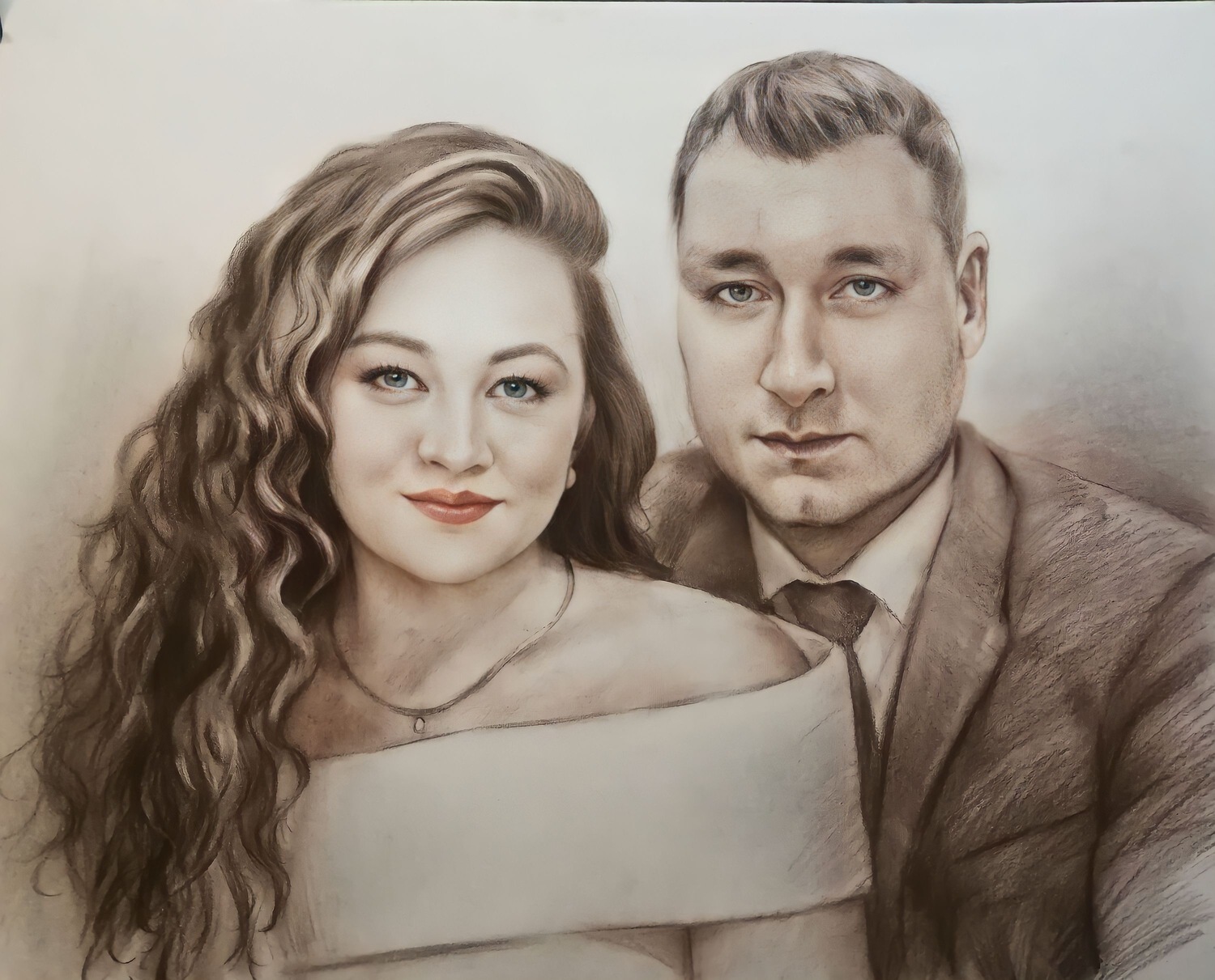 Главное преимущество — гибкость: мы можем выделить лицо, взгляд, руки, одежду или фон именно так, как вы хотите. При этом работа остаётся цельной, а материалы дополняют друг друга, усиливая впечатление и создавая эффект «живого» изображения.